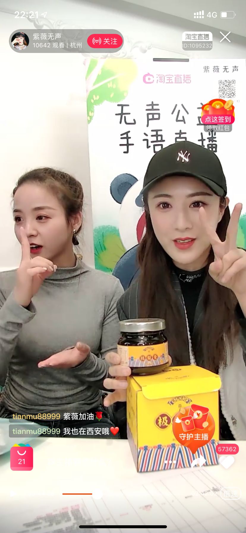 亢奋的直播间很常见,但是,无声的直播间你看过吗?在淘宝直播里,有这样一群人格外“安静”,安静地忙碌着。1月14日晚,薇娅viya就来到了这样一个“安静”的直播间。紫薇是一名淘宝主播。但与其他热闹的直播间不同,紫薇的直播间是无声的、安静的。紫薇每天会在直播间,用手语连续比划3小时,偶尔借助写字板,对每件产品做展示与介绍,方便听障群体网购。1月14日晚,薇娅viya就走进了紫薇的直播间,这也是薇娅viya第一次来到聋人主播的直播间。随着熟悉的“废话不多说,先来抽波奖”,有备而来的薇娅viya第一时间给紫薇的粉丝们送上了福利,截屏六位送上了666元红包。一开始,由于不会手语,薇娅viya和紫薇的交流还有些生疏,后来在紫薇助播的手语翻译下,二人渐渐熟悉了起来。熟悉起来的薇娅viya马上开始了老本行,她准备了自己非常喜欢的三样产品在紫薇的直播间推荐给粉丝们。薇娅viya介绍产品,紫薇就在一旁用手语翻译给她的聋哑人粉丝,两人配合的越来越默契,三样产品也是吸引了粉丝们的抢购,上架就售罄。临走时,薇娅viya还特地向紫薇学习了手语,并邀请来她的直播间做客。在全国3000万的听障人士中,像紫薇这样的聋哑主播只是少数,大部分人的工作环境和福利待遇并不好。在此之前,从小失聪的她,上一份工作是在上海某酒吧做暖场伴舞。后来在朋友的推荐下,紫薇辗转来到杭州,开始尝试做一名淘宝主播。机缘巧合初入直播行业后,从“直播小白”变成“合格主播”,紫薇付出的心血,比普通人要多十倍。而薇娅viya这次走进紫薇直播间,就是想吸引更多人来看紫薇的直播,号召大家多多关注像紫薇一样的聋哑人主播,希望通过自己的影响力让听障人士的世界变得更美好。就像薇娅viya一直强调的,“淘宝直播是一个非常好的平台,在这里不分年龄、性别,不分职业,只要你有梦想,任何人都可以来做主播。”